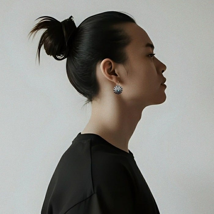 Shaped by hand in sterling silver and centered with Kingman turquoise, these concho earrings carry the warmth of the desert and the calm of well-made things. Simple, striking, and made to be worn often, these handcrafted sterling earrings are a timeless staple, offering endless style.