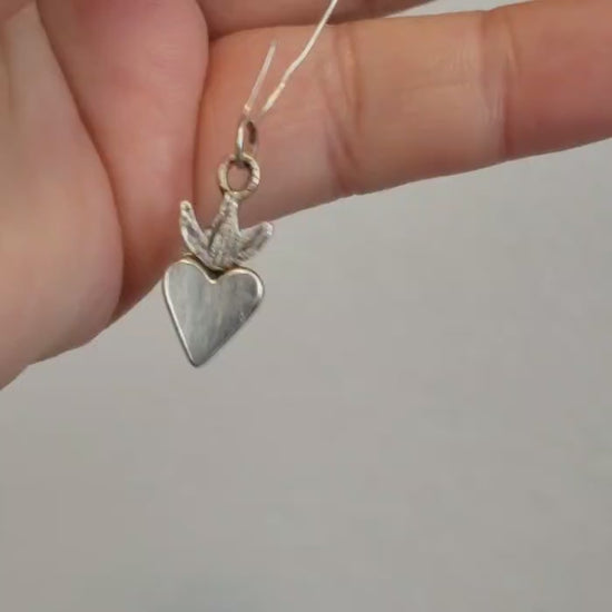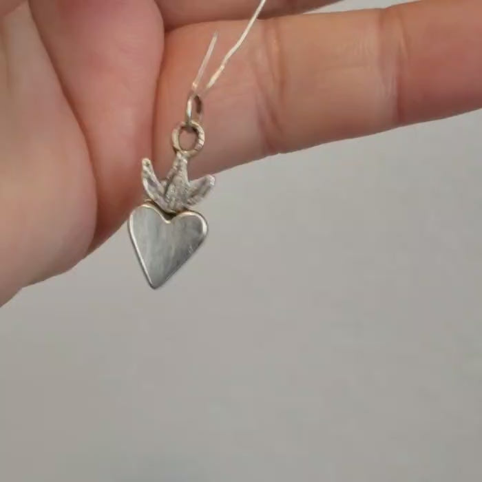 A small hand forged sterling silver heart charm from the Milagros Collection. Rustic and soulful, this silver charm is made from recycled sterling silver finished with a mixed metal bale.