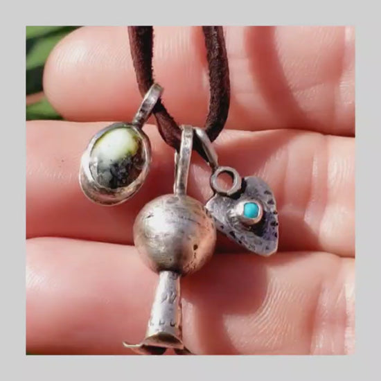 Charm 2. Rustic handforged sterling silver squash blossom pendant with patina finish. Length 1.25"